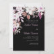 Invitación Boda negro de otoño con flores rosadas y blancas d
