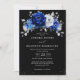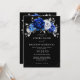 Invitación Boda negro metálico de plata blanca azul real