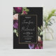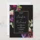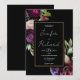 Invitación Boda negro moderno de flores moradas de color negr