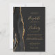 El borde izquierdo de esta elegante y moderna invitación a la boda incluye un borde de batido de color negro con un falso purpurina de oro. El texto del personalizable combina la escritura a mano de color dorado, las fuentes de copperplate y cursiva en un fondo no negro. El reverso presenta un diseño de agate negro y oro a juego.