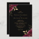 Invitación Boda negro romántico de oro de borgoña