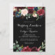 Esta rústica invitación a una ducha nupcial de luncheon negro boda es perfecta para una ducha nupcial clásica. El diseño se caracteriza por un radiante de color burdeos, rojo, marino, azul y rubor y unas bonitas flores pintadas a mano con un fondo negro que inspiran la belleza natural.