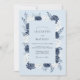 El azul marino profundo y las flores blancas bordean este diseño. Los tonos azules helados proporcionan un telón de fondo sereno para el exuberante arreglo de rosas e hidrangeas. Este motivo botánico crea una estética crujiente y nevada que es formal y atemporal. El estilo enfatiza la elegancia natural a través de una paleta fría y sofisticada.
