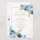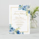 Invitación Boda Nocturna Floral Elegante de Oro Azul Invernal