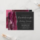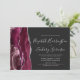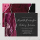 El borde izquierdo de esta elegante y moderna invitación a la boda incluye una acuarela de color burdeos bordeada por un falso purpurina de plata. El texto del personalizable combina escritura a mano, copperplate y cursiva en gris plateado sobre un fondo fuera de negro. El reverso presenta un diseño de ágata de color burdeos y plata a juego.