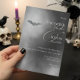 Invitación Boda Oscuro Moody Midnight Bat & Fog