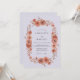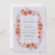Este diseño presenta una rica paleta de flores de terracota y naranja quemada sobre un suave fondo de lavanda. Rosas terrosas, dalias y delicados ramitos de follaje crean una atmósfera cálida y sofisticada. La obra de arte evoca un estado de ánimo otoñal romántico, perfecto para un evento estacional refinado. Texturas sutiles de acuarela añaden profundidad a los elementos botánicos.