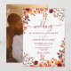 Esta elegante invitación de boda de hojas florales de acuarela de otoño se puede personalizar con su información en tipografía burdeos elegante y foto especial en el reverso. Diseñado por Thisisnotme©