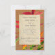 Una moderna, rústica y elegante invitación a la boda con naranja y hojas de otoño rojas de una original pintura acuarela del artista Sacha Grossel. El texto personalizable está en un guión elegante con un fondo de tema de papel hecho a mano. Invitación original y única a la boda. Un diseño sencillo y elegante para su día especial. Boda con temática de hojas de otoño o boda rústico moderno.