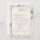 Elegantes invitaciones de bodas de estilo más formal, con un diseño clásico de marcos dorados y texto con un borde paisajista ornamentado. Este ejemplo aporta un toque moderno con un fondo de oro de champán suaves. Añade los detalles de tu evento en una fuente serif para su atractivo tradicional. Busque ID767 para ver otras opciones de color para este diseño.