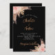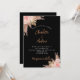 Para un boda moderno de estilo boho. Un elegante fondo negro. Decorada con rosa de oro y flores rosadas, rosas y pampas. Personalice y agregue nombres y detalles.
