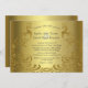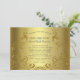 Elegante Diseño con fondo dorado y picos dorados abstractos para un evento boda especial. Le dará un toque único a su estilo boda. Personaliza con tu propia información. Invitación a matrimonio coincidente, Guardar la fecha, RSVP y más, también disponibles en mi Colección de Bodas de pavo real resumen de oro.