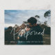 ¿Tienes que posponer o cancelar tu boda o celebración? Comparte las noticias con esta hermosa postal, fuente y colores completamente personalizable.