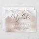 Facetas geométricas enmarcadas en oro blanco perlado - sobre una textura de vidrio esmerilado opalescente en oro rosa es ultra moderno y chic. "Actualizado" en elegante caligrafía - Si has enviado las invitaciones y has tenido que pausar inesperadamente la fecha de tu gran evento, envía esto a tus invitados. Diseño original por ©WhimsicalArtwork™tric