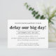 Invitación BODA POSPUESTA retrasar nuestro gran día informaci