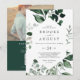 Esta foto de esmeralda verde código QR invitando a una boda de fondo es perfecta para un boda boho. El diseño es elegante y rústico, con unas hojas de acuarela verde oscuro y un eucalipto con un toque bohemio moderno. Personaliza tu invitación con una foto de compromiso en la parte posterior. Incluya un código QR para que sus huéspedes puedan consultar su sitio web boda o RSVP fácilmente en línea.