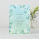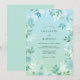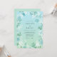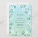 Este diseño presenta un gradiente acuarela sereno de verde espuma de mar y azul cielo. Delicadas flores blancas y follaje frondoso crean una atmósfera suave y etérea perfecta para un evento primaveral fresco. El estilo pictórico destaca la elegancia del follaje y los sutiles acentos florales para una estética tranquila.