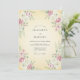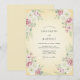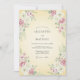 Este diseño presenta un cálido fondo de crema adornado con delicados rociados de flores de acuarela en cada esquina. Rosas suaves blancas y rosadas están anidadas entre hojas de verde salvia, creando una estética romántica y aireada. El estilo pictórico evoca un encanto vintage atemporal, perfecto para un evento al aire libre soleado o de temporada.