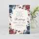 Invitación Boda Profundo Azul Borgoña Floral Flourier