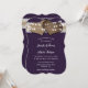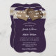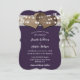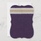Invitación a una boda púrpura rústica con dos corazones burlap contra un fondo hessiano adornado con encaje blanco. Diseño de tarjeta ideal para su fiesta de bodas rústica púrpura. Elementos coincidentes disponibles.