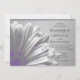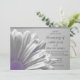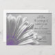 Personalice la elegante invitación a bodas Purple Floral Highlights para invitar a los huéspedes a su ceremonia de matrimonio y recepción. Esta elegante invitación nupcial personalizado y contemporánea cuenta con una fotografía botánica realzada digitalmente de una flor de margarita gerber con resaltes morados y un fondo gris plateado.