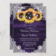 Elegantes invitaciones de bodas moradas y girasoles ideales para una romántica fiesta de bodas rústica violeta inspirada en flores de girasol. Elementos coincidentes disponibles.