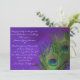 Utilice estas invitaciones impresionantes del boda del pavo real a invitar a sus amigos y familia a su boda. Este diseño de la pluma del pavo real en sus tarjetas añadirá un tacto especial a su boda temático del pavo real. Esta vida inmóvil tiene un fondo púrpura muy único del efecto metalizado con las plumas de los pavos reales. Los colores de las plumas del pavo real son el sorprender vibrante y de la mirada. Cada invitación viene con un sobre blanco.