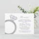 Las invitaciones a la ducha con boda de novias "She said yes yes", modernas y elegantes, cuentan con un diseño de anillo de compromiso con el platino de diamante con un aspecto purpurina brillante y un esquema de lavanda color morado y gris que se puede personalizar. Personalice el texto para su evento.