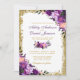Invitación Boda Purpurina morado ultravioleta floral de oro