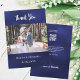 Celebra tu día especial y expresa tu más sentida gratitud con nuestras tarjetas de Personalizado para la boda de fotos, elegantemente diseñadas con un sofisticado fondo azul marino, desigual. Perfecto para compartir tus recuerdos bodas favoritos, estas tarjetas son elegantes y personales, ofreciendo una manera única de agradecer a tus invitados. Personaliza y agrega tu foto y nota de agradecimiento. Texto blanco. Atrás: agrega tu url/link a tu sitio web boda para más fotos.