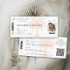 Un diseño de moda de una invitación a bodas de pasajes de avión con un tema tropical (Hawaii, etc.) con un estilizado ilustracion de una simple palmera, encantará a la pareja y a los invitados, que esperan el gran día. Plantilla para una imagen de la pareja feliz y un código QR para la tarjeta de respuesta.