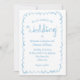 ¡El Encanto Singular Se Encuentra Con Una Personalización Eficaz! Haz que tus invitaciones de boda sean tan deliciosas y únicas como tu historia de amor con este diseño de acuarela fresco e ilustrado a mano. El marco azul claro y el guión "Boda", con letras a mano, le dan un toque de magia y alegría a su día especial. Por qué te encantará esta invitación: - Personalizable instantáneamente: personalizar fácilmente el texto, las fuentes y los detalles en línea para hacerlo verdaderamente tuyo. - Al revés, hemos incluido espacio para todos los detalles de su boda e información de RSVP, incluido un código QR. Esto garantiza que todo lo que sus clientes necesitan saber esté bien organizado y sea fácilmente accesible, ahorrando tiempo y dinero en las tarjetas de respuesta impresas. - ¿Impresión o digital? ¡Tu Elección! Solicite invitaciones impresas profesionalmente o opte por una descarga digital asequible para imprimir en casa o enviar electrónicamente. Diseñada para parejas que aman la caprichosidad, la elegancia y la comodidad, esta invitación marca el tono perfecto para una celebración alegre. Empieza a personalizar hoy y deja que empiece la emoción!