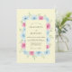 Este diseño presenta un suave fondo amarillo de botón de oro adornado con un borde de delicadas flores de acuarela. Rosas rosadas y peonías azules se entrelazan con delgadas hojas verdes de salvia para crear una estética caprichosa y romántica. La paleta de colores claros es perfecta para un evento elegante de primavera o verano, ofreciendo una apariencia floral fresca y artística.