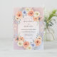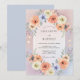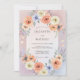Este diseño presenta un suave lavado de tonos de lila y melocotón, creando una atmósfera romántica y aireada. Lujosas rosas de acuarela y delicadas anémonas están dispuestas en una exhibición abundante. El follaje y las ramitas de eucalipto añaden un toque de belleza natural a la paleta. Es perfecto para un evento estacional elegante celebrado durante los meses más cálidos.