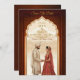 Anuncie su día especial con esta elegante y tradicional tarjeta de boda indio "Save the Date". El bonito diseño cuenta con un ilustracion pintado a mano de una pareja india majestuosa enmarcada por un impresionante arco tallado. Los ricos tonos tierra de marrón profundo y marrón crean un ambiente cálido y acogedor, mientras que los toques dorados aportan un toque de lujo. Esta plantilla de personalizable es perfecta para un boda hindú o sudasiático, con amplio espacio para personalizar los nombres, fecha y ubicación. Ideal para una "Save the Date" o una invitación digital, esta tarjeta captura maravillosamente la esencia de una historia de amor eterna.