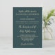 Buscas una invitación a la ceremonia religiosa católica católica tradicional de Boda masivo Nupcial, no busques más. La parte delantera, con un fondo azul verde y elegantes fuentes doradas, muestra el texto de su invitación masiva cristiana católica religiosa boda. Puede personalizar el texto. En la parte trasera se muestra el cuadro Desposorios de la Virgen o El matrimonio de la Virgen por Pedro Ramírez el Mozo (1638-1679). Pedro Ramírez el Mozo fue un nuevo pintor barroco español o barroco mexicano, nacido en México, Nueva España. Este cuadro muestra el matrimonio de la Santísima Virgen María con el santo José.