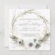 INVITACIONES BODAS REPROGRAMADAS.Fondo rosa gris, verde sabio y blanco. Una sencilla acuarela de color mudo y una guirnalda pintada en tonos pastel de aceite con sauces, vegetación eucaliptos, flores blancas, ramas y aliento del bebé. Derechos reservados Audrey Jeanne Roberts, copyright de arte.