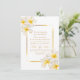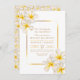 flor de plumeria frangipani blanco color agua botánica bonito reprogramado invitaciones de boda acuarela flores con marco dorado. Las hermosas bodas florales son ideales para una flor botánica o tropical y un boda con temática playera. Personaliza con tus propios detalles. También están disponibles otros elementos coincidentes. © Arte y diseño original de pintura de acuarela floral de Sarah Trett para www.mylittleedenweddings.com