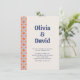 Sumérjase en una cápsula del tiempo de la nostalgia de la moda con nuestra invitación nupcial moderna de mediados de siglo. Diseñado para transportarte a los glamorosos años 60, esta invitación es una armoniosa mezcla de sofisticación vintage y estilo contemporáneo. El frente de la invitación presenta un patrón clásico, que abarca colores audaces y contrastantes que preparan el escenario para una celebración diferente a cualquier otra. Añade tus propios detalles haciendo clic en la opción "personalizar". En la parte posterior de la tarjeta, puede agregar su propia imagen de código QR o generar una mediante las herramientas de personalización de Zazzle o borrar y reemplazar el texto.