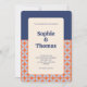 Sumérjase en una cápsula del tiempo de la nostalgia de la moda con nuestra invitación a la boda de Mid Century Retro. Diseñado para transportarte a los glamorosos años 60, esta invitación es una armoniosa mezcla de sofisticación vintage y estilo contemporáneo. El frente de la invitación presenta un patrón clásico, que abarca colores audaces y contrastantes que preparan el escenario para una celebración diferente a cualquier otra. Añade tus propios detalles haciendo clic en la opción "personalizar". En la parte posterior de la tarjeta, puede agregar su propio código QR o borrar y reemplazar el texto.
