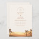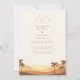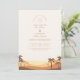 Disfrute del cálido romanticismo de una puesta de sol tropical del desierto con este minimalista diseño boda de inspiración retro. Este estilo, con dunas en suave pendiente y palmeras con silueta en tonos de siena y melocotón quemados, evoca un sueño paraíso del desierto perfecto para bodas de inspiración boho o destino. El degradado nostálgico y la disposición moderna combinan el encanto del desierto costero con la elegancia atemporal.