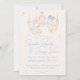 Invitación Boda Retro Dibujo a Mano Plegable Pastel y Azul