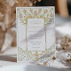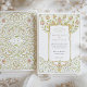 Esta romántica invitación a la boda combina la elegancia rococó con la suavidad Art Nouveau, con un marco floral pintado a mano de flores rosas, brillantes viñas y acentos de pergamino dorado. El diseño del borde se envuelve delicadamente alrededor del texto de la invitación con un flujo natural, orgánico, creando una estética vintage de ensueño. Los tonos pastel mullidos, de color ruidoso, sabio y crema de mantequilla se detallan cuidadosamente con un acabado acuarela que añade profundidad y gracia. En el reverso se exhibe un motivo de jardín simétrico formado por tendriles de hojas entrelazadas y brotes florales en un entramado dorado refinado. Con su encanto histórico y su capricho botánico, este diseño es perfecto para bodas inspirados en la naturaleza, el patrimonio o la elegancia europea.