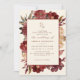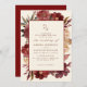 Esta elegante invitación a una boda floral borgoñona y roja muestra los detalles de su boda con letras modernas, enmarcada en un marco ovalado de color beige polvoriento con flores de acuarela y follaje botánico en tonos tierra inspirados en el desierto, con color burdeos, rojo, marrón y marfil con un texto de color cobre cálido.el toque de marco vintage hace única esta invitación floral vintage.Una invitación a la boda perfecta para un crimestiza en verano, otoño de primavera y bodas de invierno.