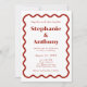 Invitación Boda rojo oscuro del borde ondulado del retro de l