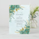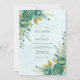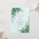 Evoque un sentido de encantamiento con este diseño etéreo que presenta flores de teal exuberantes y follaje dorado. Los lavados delicados de acuarela crean una atmósfera soñadora y romántica perfecta para una celebración sofisticada.