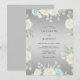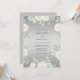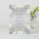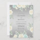 Delicadas flores de crema y pálido azul adornan un fondo gris suave, evocando un sentido de romance suave. Este diseño presenta arreglos florales exuberantes y vegetación sutil, creando una atmósfera elegante y serena para una ocasión especial.
