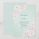 Este diseño presenta un fondo sereno de color verde menta adornado con delicadas rosas rosadas. El estilo de acuarela crea un ambiente suave y etéreo perfecto para un evento romántico de primavera o verano. Elementos botánicos exuberantes y acentos frondosos decoran el diseño con elegancia y gracia. La paleta combina tonos pastel con belleza floral natural para capturar una estética atemporal.