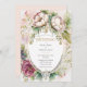 Colores pastel suaves románticos y elegantes con borgoña y verdes profundos en una corona floral. El fondo de rosa suave le da a esta invitación un sentimiento calmado y suave. Esta es una invitación tan hermosa para una boda de cualquier temporada. Simplemente impresionante. Un simple marco victoriano de flores. 100% de satisfacción del cliente en “Zazzle” todos los días.