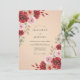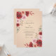 Una rica paleta de borgoña profundo y rosa suave define este diseño floral acuarela romántico. Flores de rosa exuberantes y ramitas de hoja de eucalipto crean una apariencia botánica sofisticada y atemporal contra un fondo de champán cálido. Esta estética elegante captura la esencia de la belleza estacional, haciéndola ideal para un evento de boda clásico.